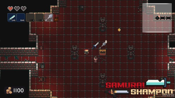 Melee-based roguelike dungeon crawler where a fallen samurai must retrieve his stolen Shampoo. Make your run unique by selecting unique perks, picking a weapon when you start a run, picking up items and weapons from chests, and buying them from shops.