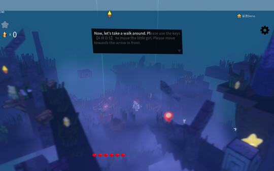 The game is played from a top-down, 45-degree angle, mimicking classic traditional RPG perspectives. You control the character's movement with the keyboard (WASD keys) and use the mouse to rotate the camera by holding down the right mouse button. By constantly adjusting the camera angle, you can find the items you need. The game also incorporates mild puzzle-solving, nurturing, and combat elements. Progress the story by unlocking new abilities and scenes.