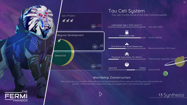 The game has The Fermi Paradox is a choice-driven narrative strategy game in which you’ll guide alien civilizations that can thrive or simply survive through the ages, picking up radio signals from distant stars and finally making contact with one another by exploring the furthest corners of the galaxy.