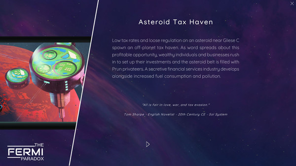 The Fermi Paradox is a choice-driven sci-fi narrative strategy game in which your decisions in one corner of the galaxy can upend entire civilizations in another. Guide species through millennia and help them explore the vastness of space, make contact and, perhaps, create harmony.