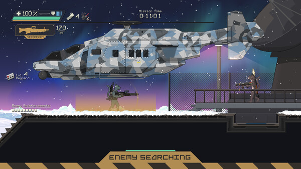 A tactical platformer combining stealth and fast-paced gunplay with action and story-driven missions in a vast explorable world with a large variety of environments. Infiltrate enemy outposts, prevent nuclear war, and uncover the enemy's top secret weapon; Project Emerald.