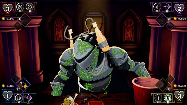 Cooperation and Chaos: Pack some drinks and bring some friends. Up to 4 players can join together in couch co-op multiplayer or via Steam remote play, to chug and slay their way across the labyrinths under the tavern. Mix and match your team of heroes to create the ultimate demon-destroying party, and work together to best boozy bosses, each with their own amplified tavern game arena.