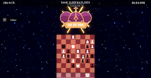 Test your brain and your brawn in the toughest chess game ever made! Play against the Stockfish chess engine to build your path and climb upward to claim the crown, but be careful! One small blunder and you risk losing your progress. Heavy is the head that wears the crown, but who will wear it?