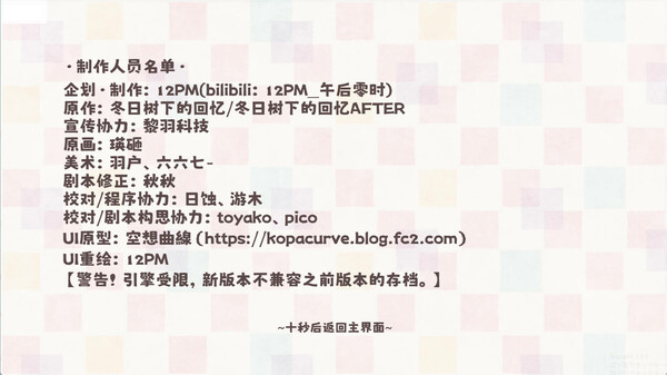 《冬日树下的回忆AFTER》是由MagicaLuv负责运营协助发布,小霧制作的免费原创视觉小说。