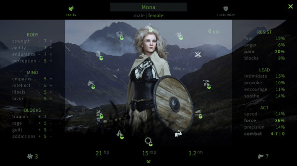Create the body and mind of your own hero. Will you be brave, vengeful or gifted but traumatized? Customize your appearance and traits that will determine your playstyle.ROLE-PLAY