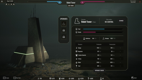 The game has In TerraStorm's alternative timeline, the War has ended over 70 years ago with the discovery of Viribus. The mysterious resource, uncovered by the Nazis, was used to wipe the planet of most of the humankind. Nowadays, however, it's being used as a perfect power source for those who miraculously survived, and congregated in the Capitol. ROSE Corp., responsible for the Capitol's wellbeing, decided to found Project Towers as a solution for growing numbers of refugees, storming the city's gates. Your role, as one of the project's Architects, is to find a suitable place and start new settlements - self-sufficient towers - to become the humankind's new bastions.