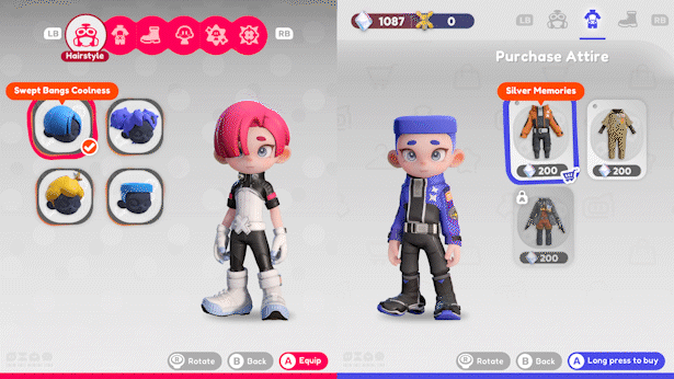 The adventure isn't just about combat; it's also about showcasing your style! Pick from a selection of gear and cosmetics in the Closet and combine them to create your unique looks. Then you can set off on the journey in your personalized style!