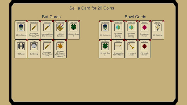 The game has When you think of cricket what comes to mind? That's right this game needs more cards! In This game you'll attempt to lead your team to test victories by playing cards that make your players better or their players worse.