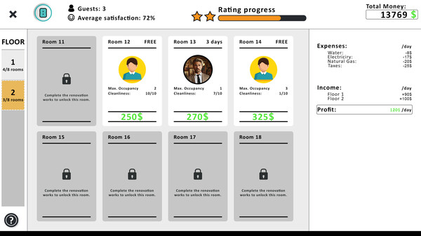 Apply your entrepreneurial skills to develop your motel into a profitable business. Set room prices, control expenses, and optimize your revenues. Attract guests through marketing campaigns and provide top-notch service.