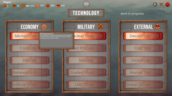Explore real-world technologies from the latter half of the 20th and early 21st century, along with futuristic sci-fi advancements, to enhance your geopolitical, resource management and space exploration abilities.