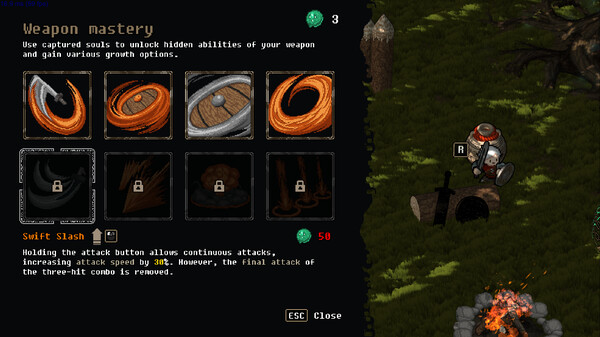 A mysterious witch provides you with various weapons. Utilize a variety of weapons, each with its own unique actions and skills, to experience different combat styles. Fight, grow, and unlock new actions through character traits.