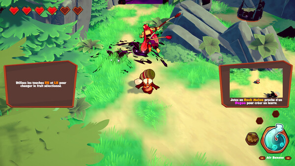 Pim is way too fearful to face his enemies alone, he will meet great heroes throughout his journey, and in order to fight against the threat of the trapers, he will have to support several heroes by overcoming their shortcomings with his elemental fruits and unique skills!