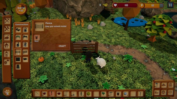 The game has A game where you can create your own farming or simulation game. It includes an inventory, crafting, buildings, growing plants, farm animals and much more.