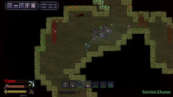 Dig and explore the depth of the earth. Mine and harvest miscellaneous resources. Craft better tools and weapons and expand your base ! Fight against local mobs. Unlock electricity to lighten the darker depths. Automate harvesting to reign on the underground world !