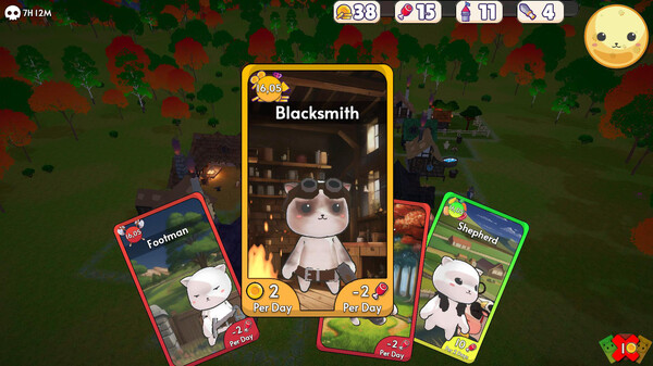 Time passes quickly as you build your kingdom, and what buildings produce alone is not enough to survive. You need to combo your buildings! So you can't produce enough food, and hunger is at the door? Just combo your wheat farm with your mill. You do not have enough gold to buy the next card, and you need to produce more gold. Just combo your grocer with your farmer cats. With 30+ Buildings, you can build the combo your kingdom needs. With easy-to-use menus, you can see how much each building produces and consumes and which buildings it can combo with.