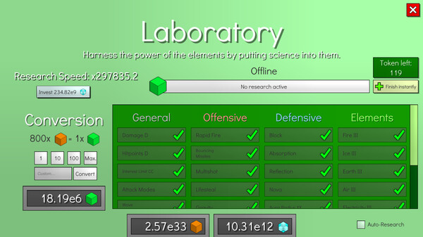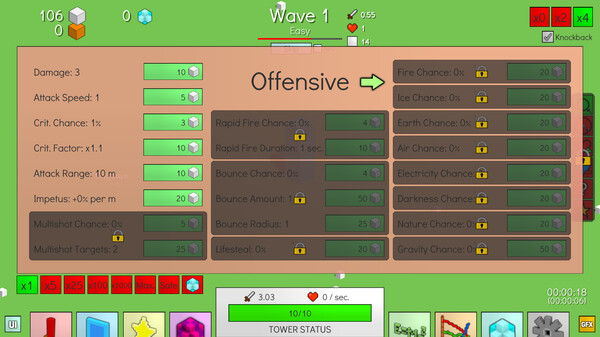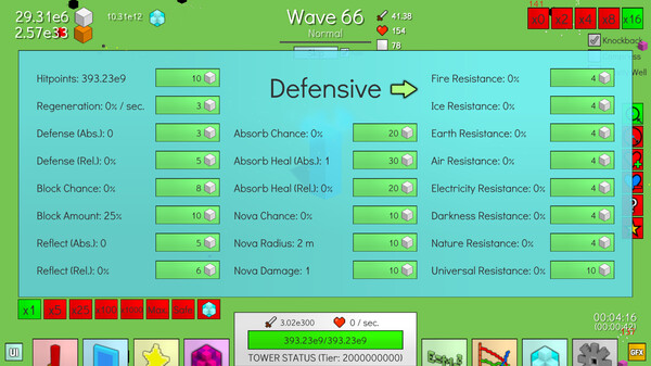 The game has The Perfect Tower is an idle strategy game that puts your tower defense and resource management skills to the test. As waves of enemies relentlessly approach, your task is to defend your tower by upgrading a variety of enhancements. Destroyed enemies yield resources that can be used to enhance town buildings, discover new technologies, and improve your tower. Although your progress within the tower testing segment resets upon the destruction of your tower, the town acts as a persistent hub where you can permanently enhance and upgrade your tower. These improvements empower you to tackle higher waves during subsequent tower testing sessions.