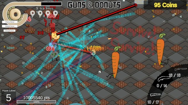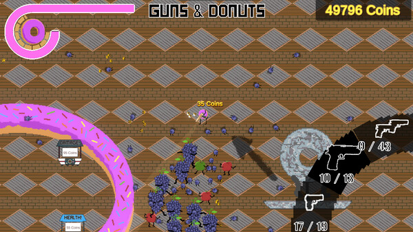 The game has Donuts! and Guns!? This is the definitive indie, pixel art, 2D, top-down, wave-based, twin stick shooter that has a Donut as the main character and personified food as the enemies.
