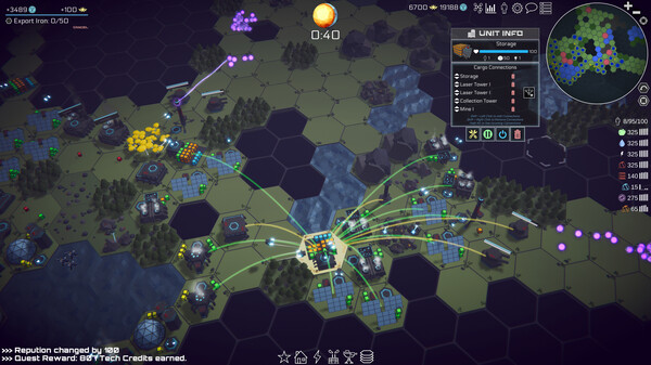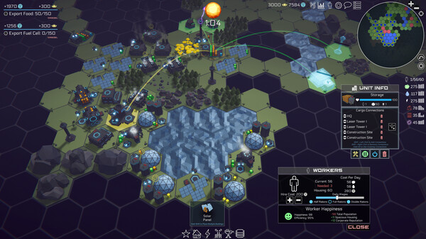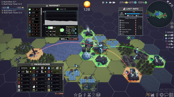 Resource management without micro-management! Build, defend, and optimize your ever-growing industrial colony in a dynamic hex-tile world. Buy low, sell high to expand and upgrade your base. Even your enemies are a resource to be exploited. Profit waits for no one!