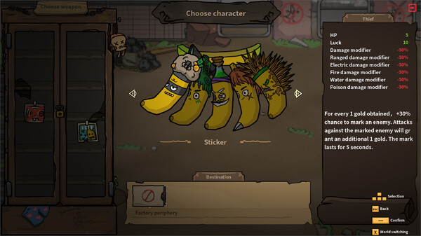 From the Soldier with a scope, to the poison-studying Alchemist, the thorny Hedgehog, and the treasure-hunting Theif in garbage heaps, each profession has its unique strengths. More little bananas await your unlocking!
