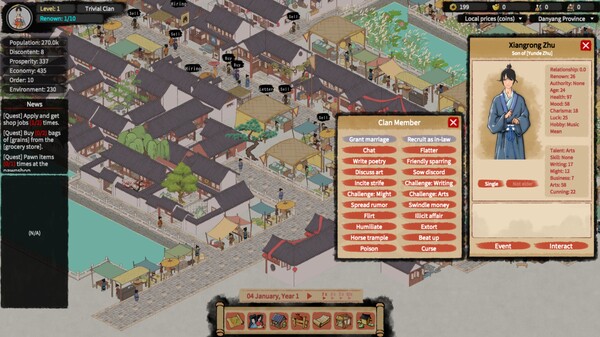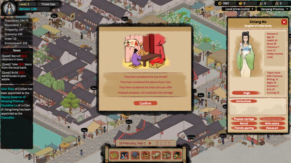 Bestow your clan members with knowledge, wed them to other houses, and propel your kin to greatness, whether by the ink of imperial exams or the steel of battlefields. In this dance of power, cooperation and conflict with rival houses, including the indomitable royal lineage, are woven into the very fabric of your destiny.