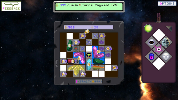Use your INVENTORIX device (crafted by space gnomes) to extract maximum value from interstellar items and recruit aliens to boost your earnings. Pay off a mysterious debt or push your luck to create astronomical wealth.