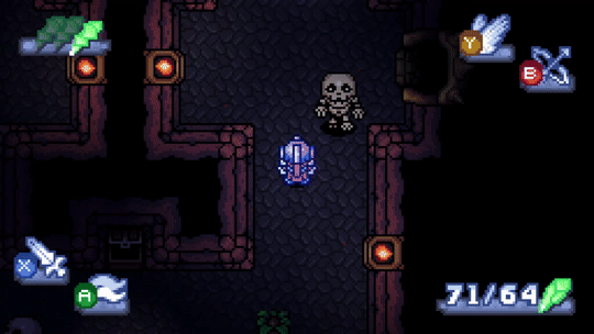 Explore this top-down dungeon crawler with semi-randomized levels. Find items like a boomerang and bow and more to defeat enemies, and collect soul crystals to access boss rooms.
