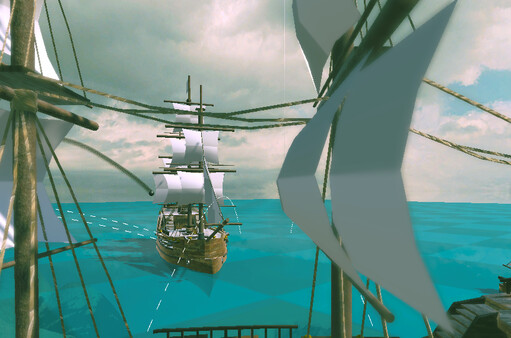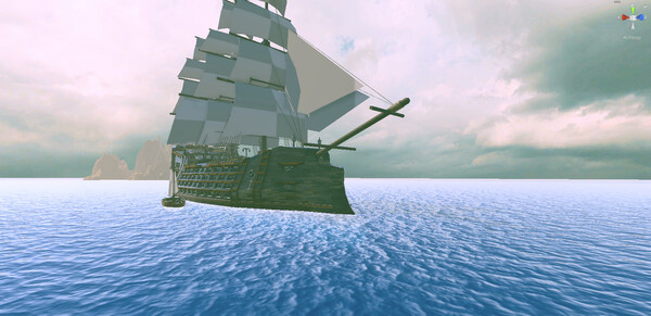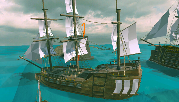 Nautical simulation game with sail battleship piloted in third-person perspective.