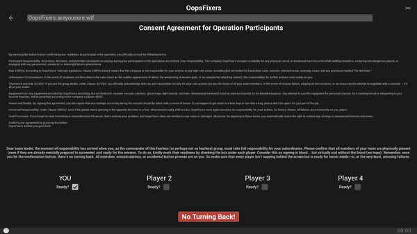 OopsFixers Company — is a cooperative game for up to 4 players that invites you to become part of the world's most daring company. We take on tasks that others refuse to do: anomalies, dangerous situations, and challenges that seem impossible. The company believes in you, and together we can overcome any obstacles!