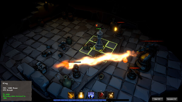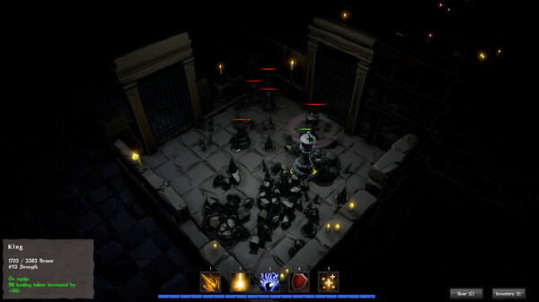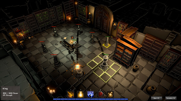 Petrified Pawns has chess-style movement and turn-based combat. Fight new types of chess pieces and bosses. Build your army and keep them alive while you advance through the dungeon. Use healing spells, loot and strategy to keep your king alive and reach the end with as many units as possible.