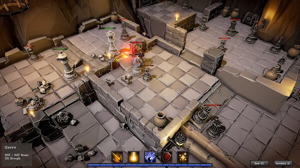 Petrified Pawns is an RPG dungeon crawler with turn-based combat and chess-like movement. Fight new types of chess pieces and bosses. Build your army and try to keep them alive as you advance through the dungeon. Use healing spells, loot and strategy to reach the end with as many units as possible.