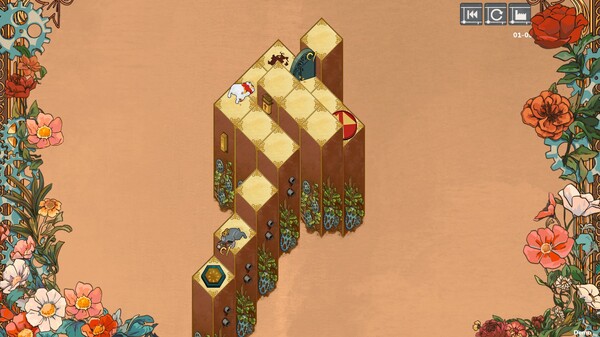 The game features a distinctive graphic style inspired by the works of Alphonse Mucha and Art Deco. It is an intriguing blend of plant motifs reminiscent of a rabbit's burrow and steam-powered machines from Steampunk.