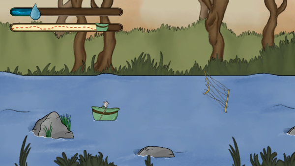 During the game you will also be able to control a small helmet that carries all the survivors down a perilous river. In a side-scrolling gameplay you will need to avoid obstacles and make sure the helmet's water level doesn't reach the point of sinking. With each new friend you find, new mechanics will be unlocked, giving you more control to avoid the river's perils.