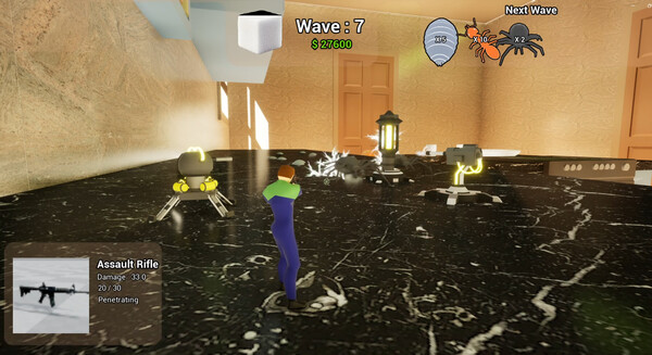 Choose between shotguns, assault rifles or rocket/grenade launchers to best kill the bugs. If it gets too much, make sure to buy some turrets to help with your defence. Turrets will become crucial as you reach the higher waves. (The Bug Zapper will be especially useful for swarms as its electric attacks cause splash damage to multiple critters.) Upgrading the towers will make them more powerful!