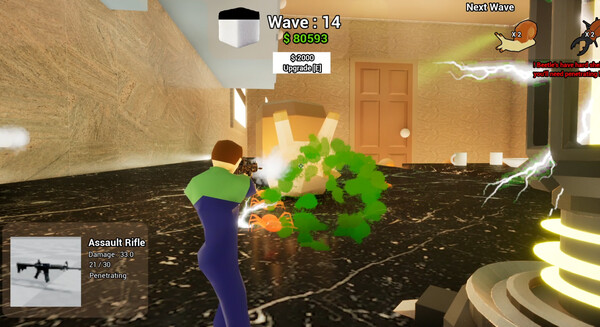 You'll play as a miniature bug exterminator with the tricky task of defending a sugar cube (probably for a cup of tea) in a giant kitchen. As the waves progress, the easy-to-kill woodlice are soon replaced with stronger bugs like ants, spiders, snails and more. Make sure to purchase the penetrating upgrades for your weapons or you'll be overwhelmed by stag beetles that have hard shells that take a lot to destroy.