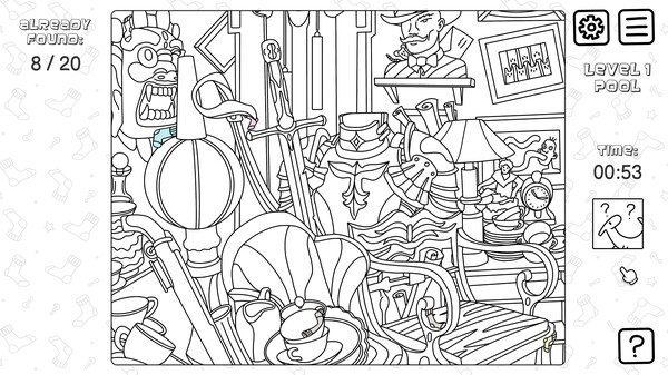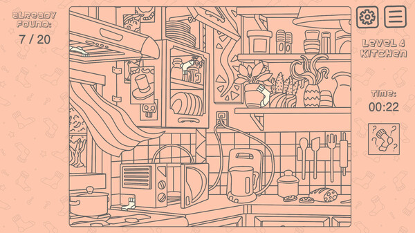 Have you ever struggled to find the second sock? That's because there's no socks! There's No Socks is a hidden object game with a selection of 4 locations and random socks to find for each of them.