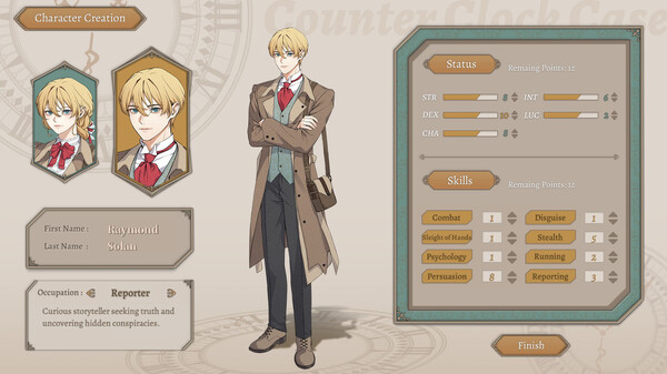 Enter mid-1900s Europe on a quest for revenge, only to find your nemesis murdered. Framed for the crime, unravel the mystery with CRPG elements, offering various choices to crack the case. With each playthrough, uncover new killers and methods. Can you clear your name before it's too late?