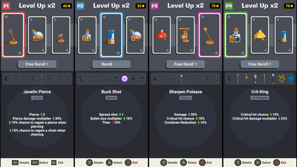 A 4-player local co-op rogue-lite bullet-hell that will have you and your friends laughing your way through epic battles! Grab your friends, pick your characters, and get ready to ruin someone's day! Level up, select from hundreds of modifiers, get loot, and earn your place on the leaderboards!