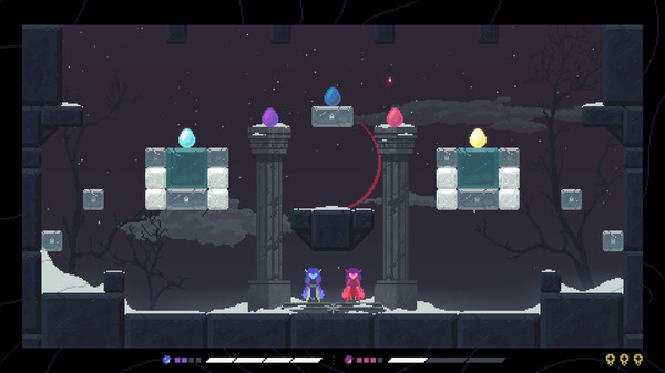 Dragenas is a 2D, couch co-op action game. Start as dragonfly fairies La & Ta, with three initial level groups to tackle. Along the way, you can improve your abilities, and unlock stages, worlds & other dragenas. Within levels, you teleport from room to room, clearing them of waves of enemies, with each world ending in a boss battle. Three difficulty modes offer a range of challenge from relaxed, to punishing.