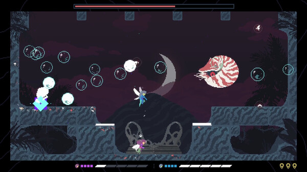 Insect spirits are your constant companions - it's through absorbing their energy that you gain ammunition to attack. They come in three varieties: worms, beetles and dragonflies. Worms and beetles power your regular attacks (shooting & dash-attacking), and the elusive dragonflies give you a large wave attack that mows down all enemies in its path.