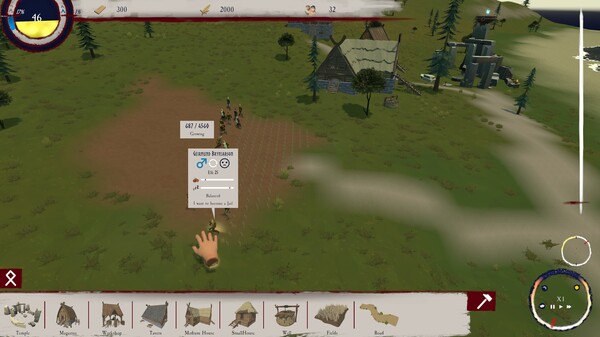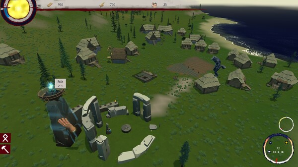 Use your Divine Hand to interact directly with the world. Shape the terrain, move objects, and manipulate the fate of mortals. Draw runes on the ground to cast miracles that alter the course of events: unleash beneficial rains, grow forests, or provoke devastating calamities. Each miracle requires Power, obtained through the faith of your followers and the mysterious energies of the island.