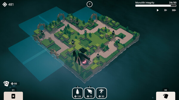 Every game is unique because the board is procedurally generated and adapts to your decisions. As the game progresses, enemy paths will become longer and will split several times. Neutral structures that can affect gameplay and the height of each board segment are also randomized on each board piece. You will never play the same map twice!