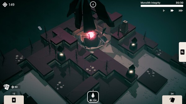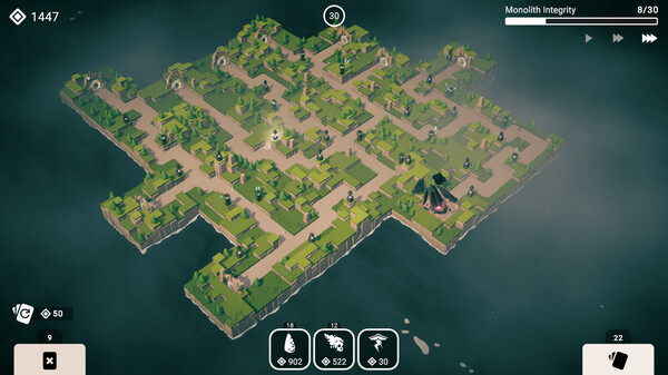 Wandering Monolith is a Roguelike, Tower Defense game with Deckbuilding elements.