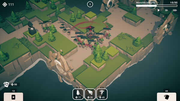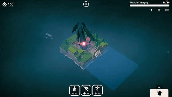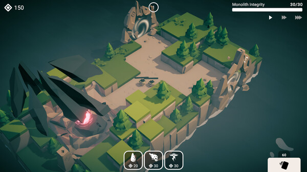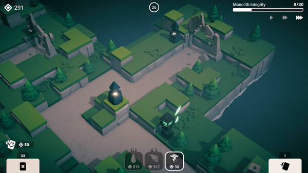 You are the Wandering Monolith, falling from the sky. Summon towers, expand the board, defend your core, and build your deck of upgrades to conquer countless worlds.