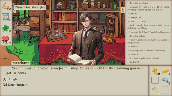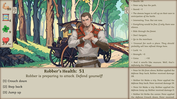 In this text-based RPG you will go on a journey and see the world through the Peter ’s eyes. You will meet other heroes, each of whom can influence the course of history. Will you rescue the beautiful stranger? Help a kind old lady? Fulfill a fellow traveler's request? It depends only on you whether Peter can overcome the challenges and fulfill his dream.