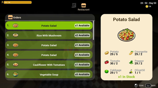Players sell the produce grown on their farms in their own restaurant in the village center. In the restaurant, players cook delicious food and serve it to customers. Players can diversify their menu by trying different recipes and prepare special dishes to increase customer satisfaction.