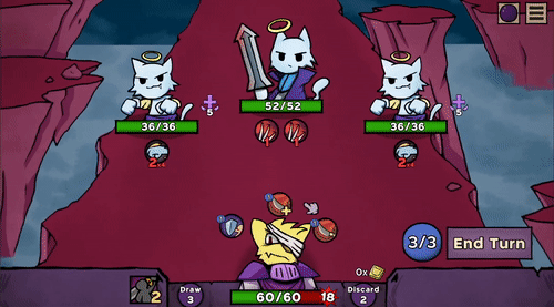 A somewhat standard Deckbuilding card battler! Attack enemies, Gain Block, Get Cards/Relics, Remove Cards, and kill enemies! However, you can use your cards on more then yourself and enemies: