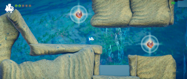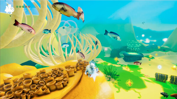 2.5D adventure game where you are a magical fish who collects polyps (baby corals) to plant pieces of coral reef while exploring the ocean. Powers such as shoot, lunge and electricity are learnt from other fish and obtained to unlock new zones after defeating obstacles on each level.