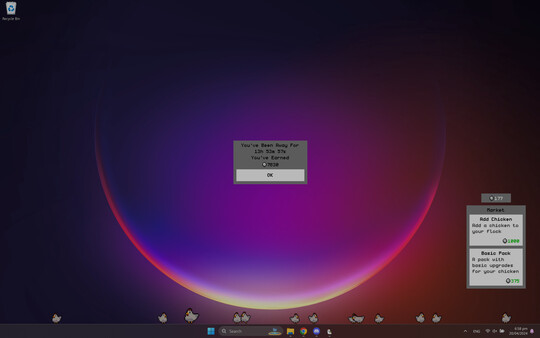 The game has Overlay is a desktop-overlay, idle game where players own Chickens that generate Eggs to buy Cards to use to upgrade their Chickens to generate more Eggs.