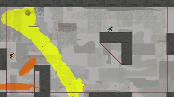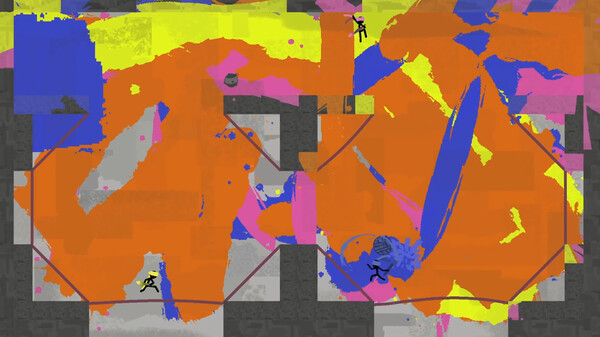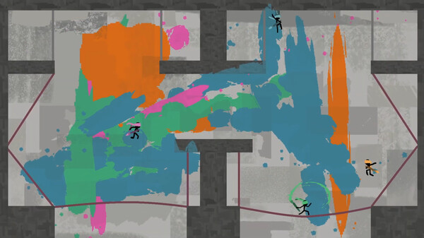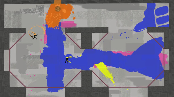 Attacking opponents will splatter paint of your color on the stage. The more velocity you have, the more paint will be splattered. Players of higher velocity will have priority when attacking at the same time.