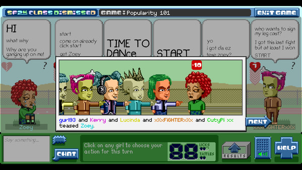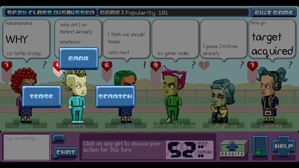 The game has SF2K: Class Dismissed is, like, an intense war between a bunch of girls who are all out to ruin each other's popularity and self-esteem. The object is to physically attack and majorly dis your enemies until they are totally mortified beyond belief. You'll never come out on top without making the right friends, so be careful who you're nice to. Because in the end, only the shrewdest will survive with their social status intact!